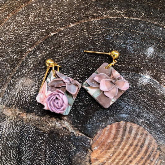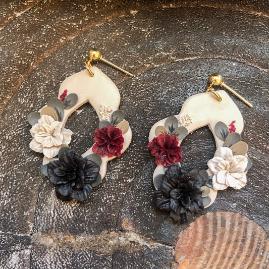 Snowy Christmas Floral Collection, Polymer Clay Earrings