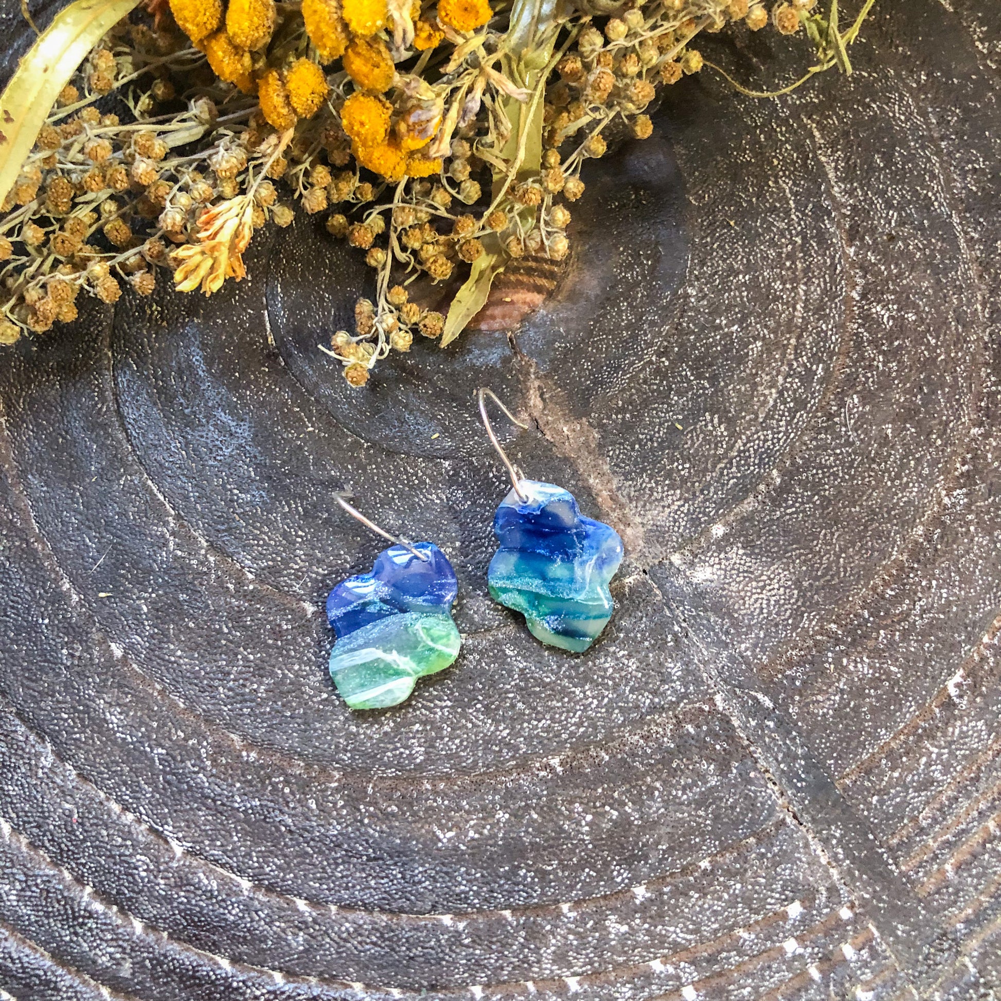 Azarel's Collection, Small Moroccan Style Earrings in Blues and Greens on Sterling Silver, Canadian Made