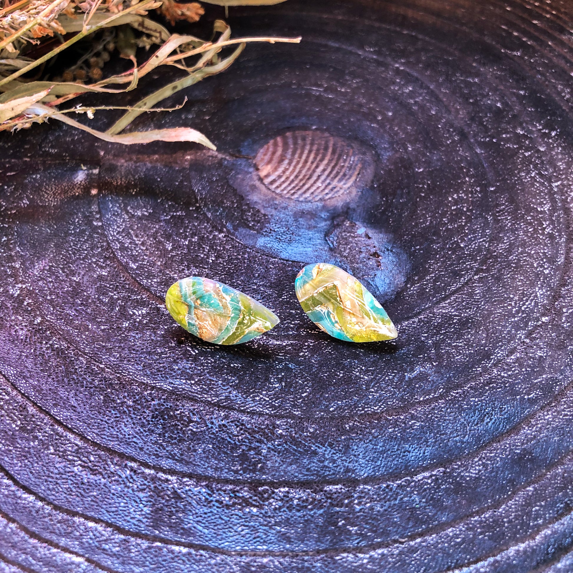 Bright Earthy Faux Stone Leaf Studs in Polymer Clay, Canadian Made