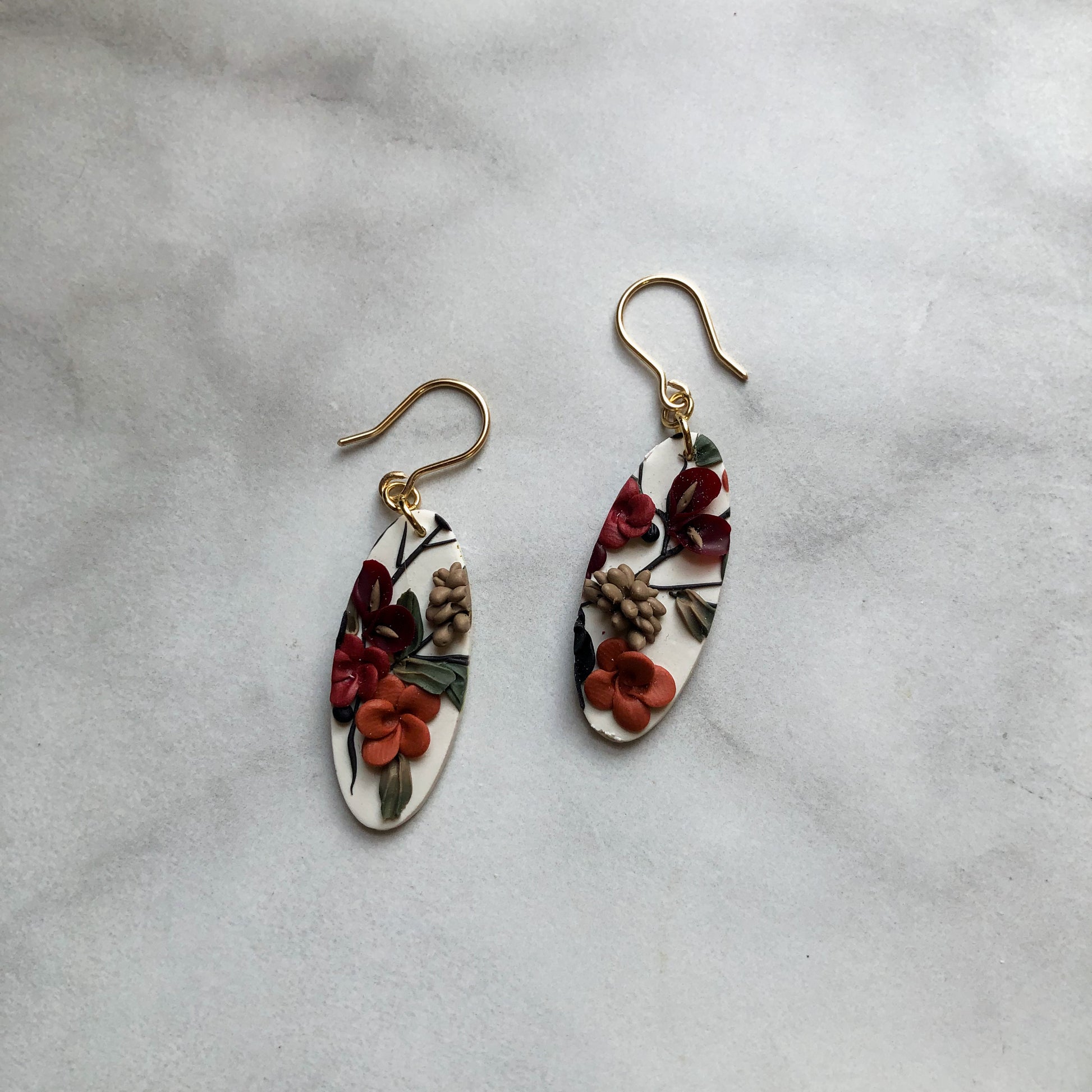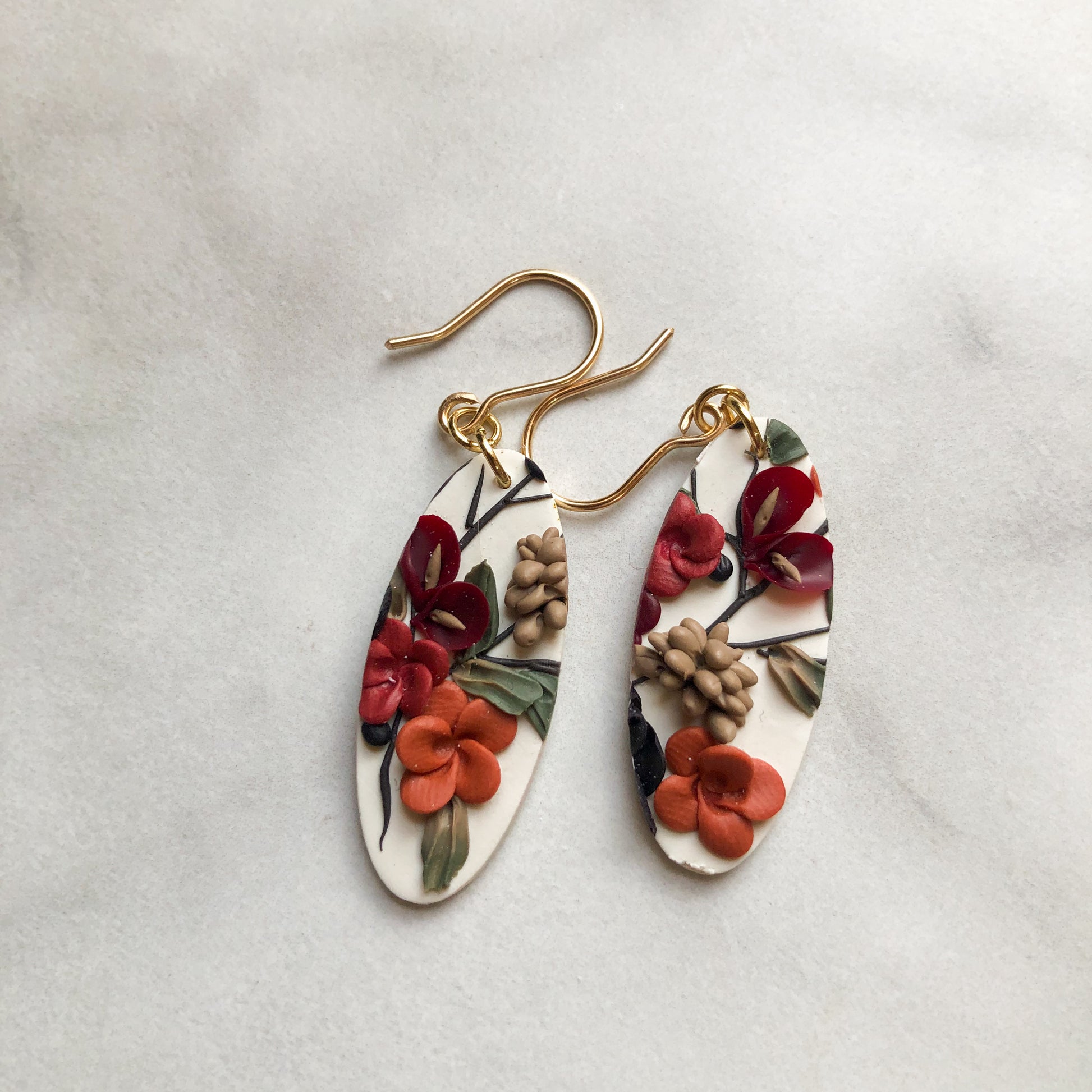 Christmas Floral Collection, Small Ovals on 14k Gold Filled Hooks