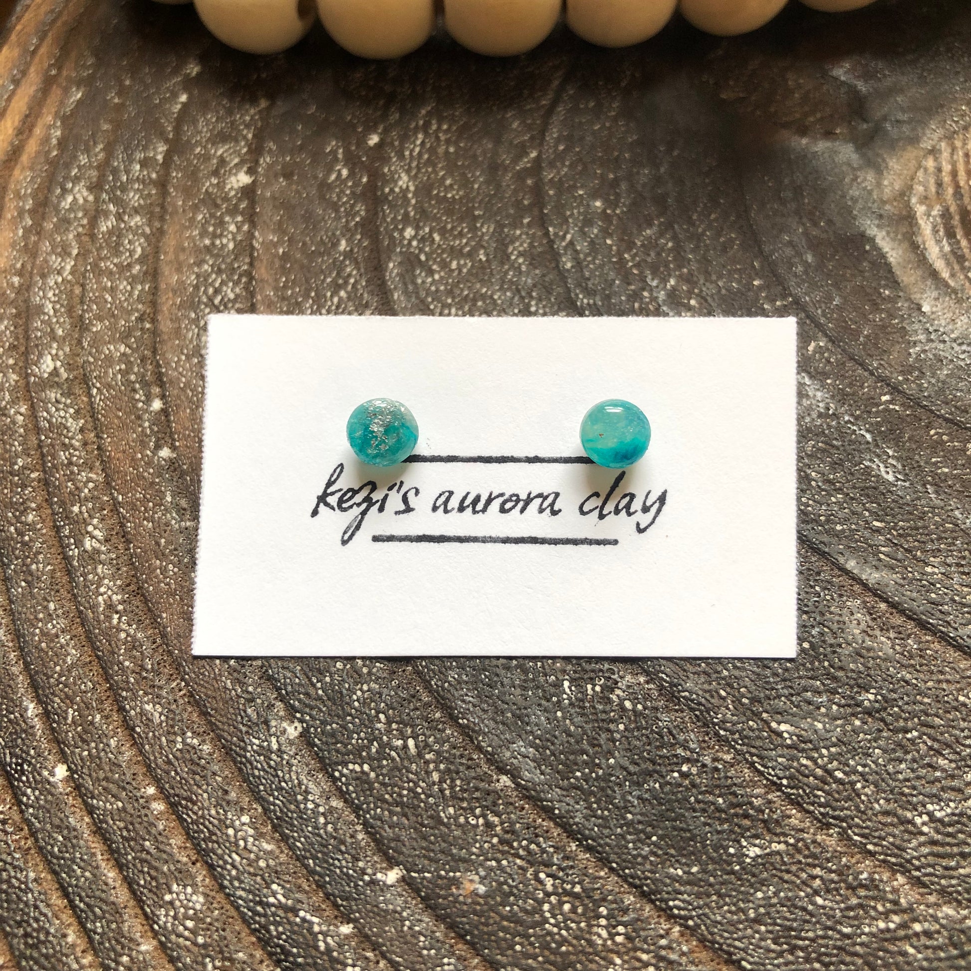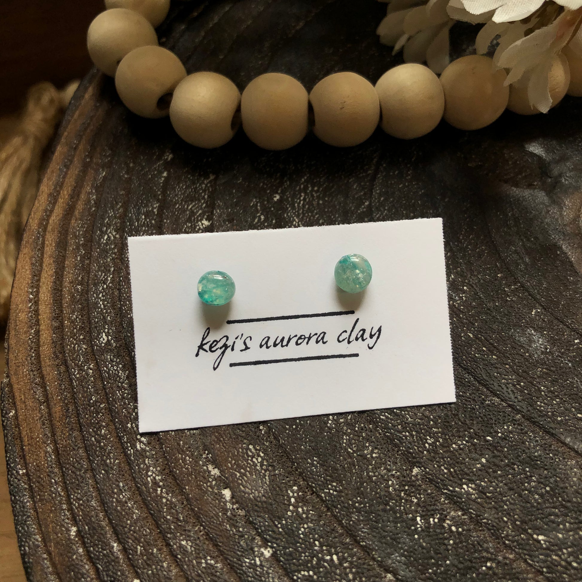 Mini Icy Studs in Blue and Green Polymer Clay, on Surgical Stainless Steel, 10 Variations