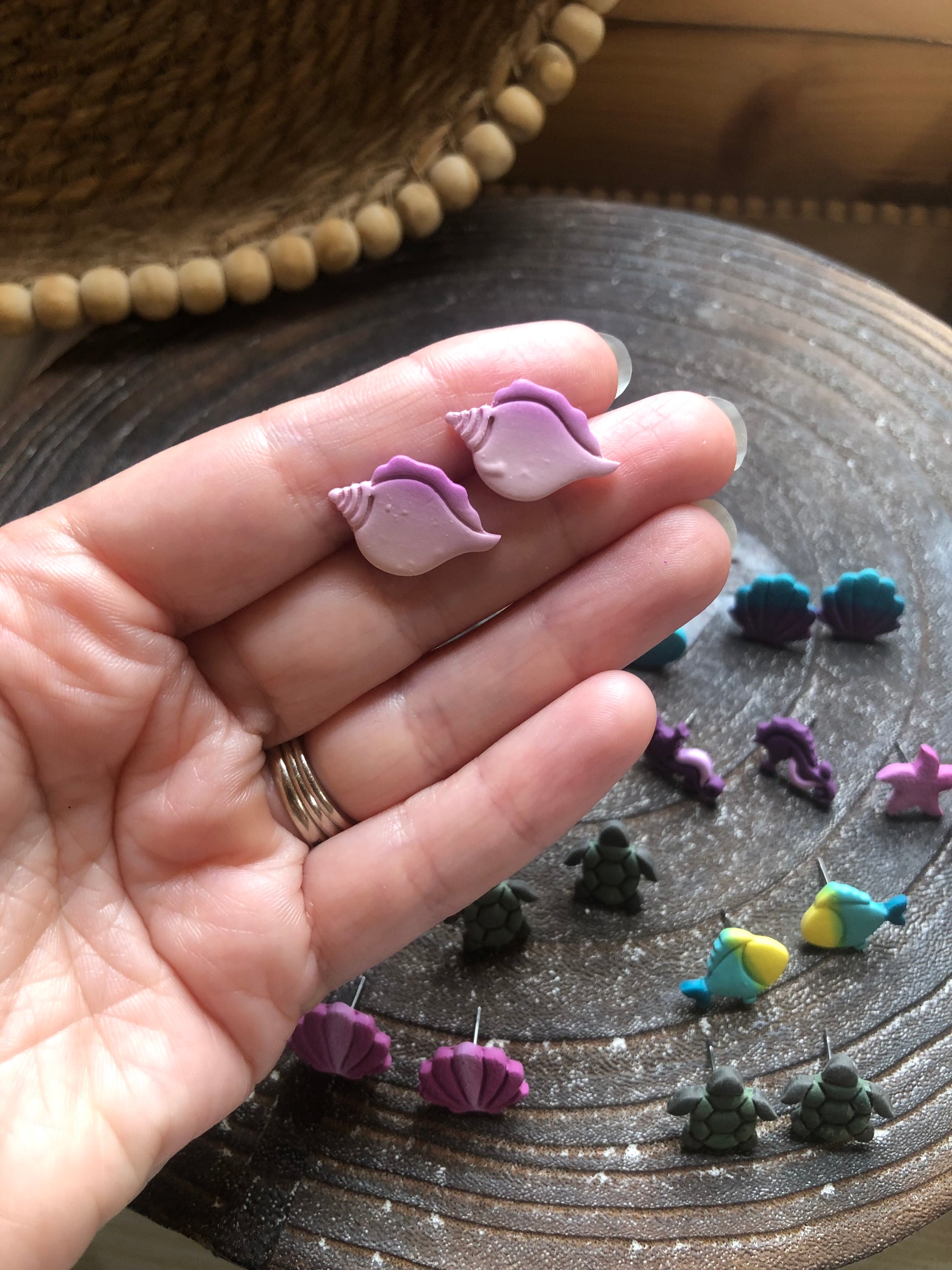Ocean Collection, Polymer Clay Studs on Surgical Stainless Steel