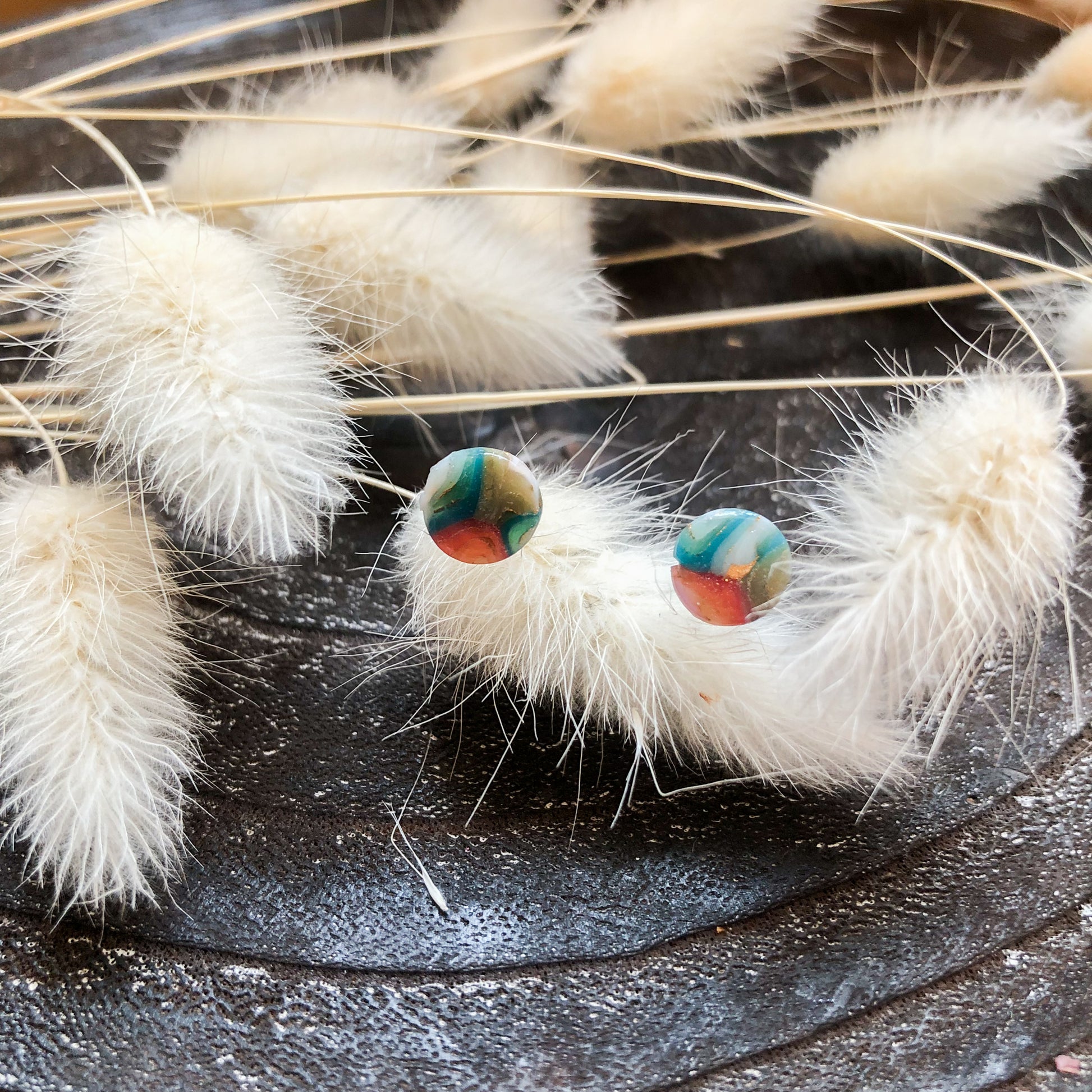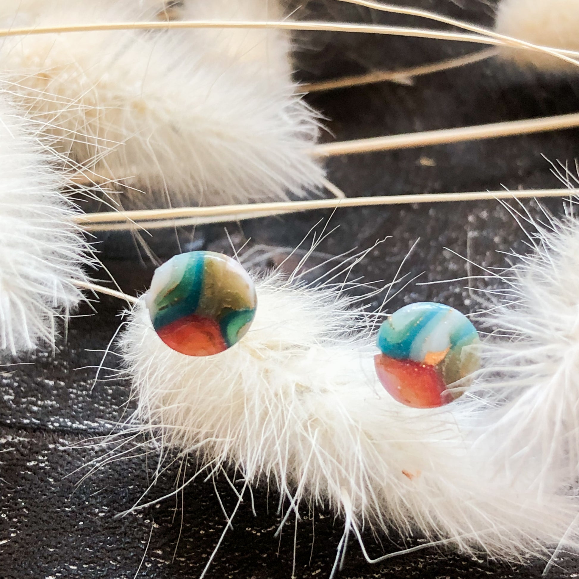 Small Circle Studs in Polymer Clay on Surgical Stainless Steel