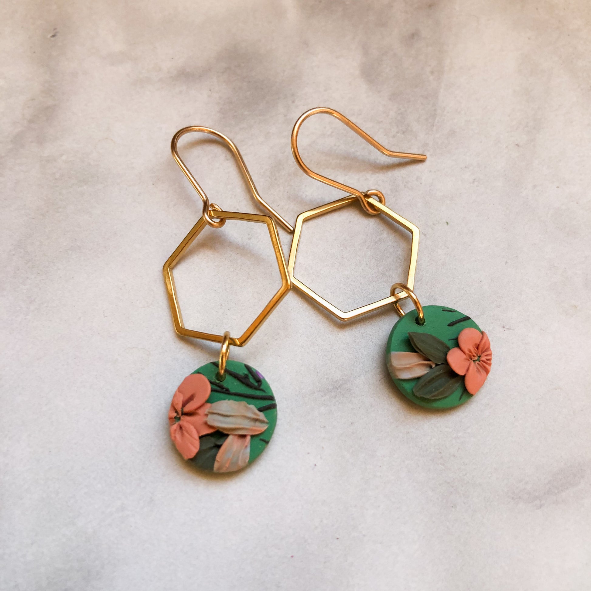 Spring 2025 Collection, Simple Dangles with Hexagon, on 14k Gold Filled Hooks