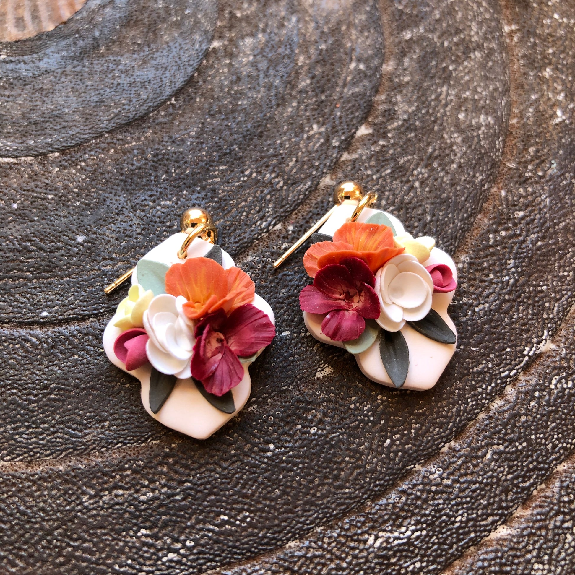Handmade polymer clay earrings available in your choice of 14k gold filled ball posts or hooks.