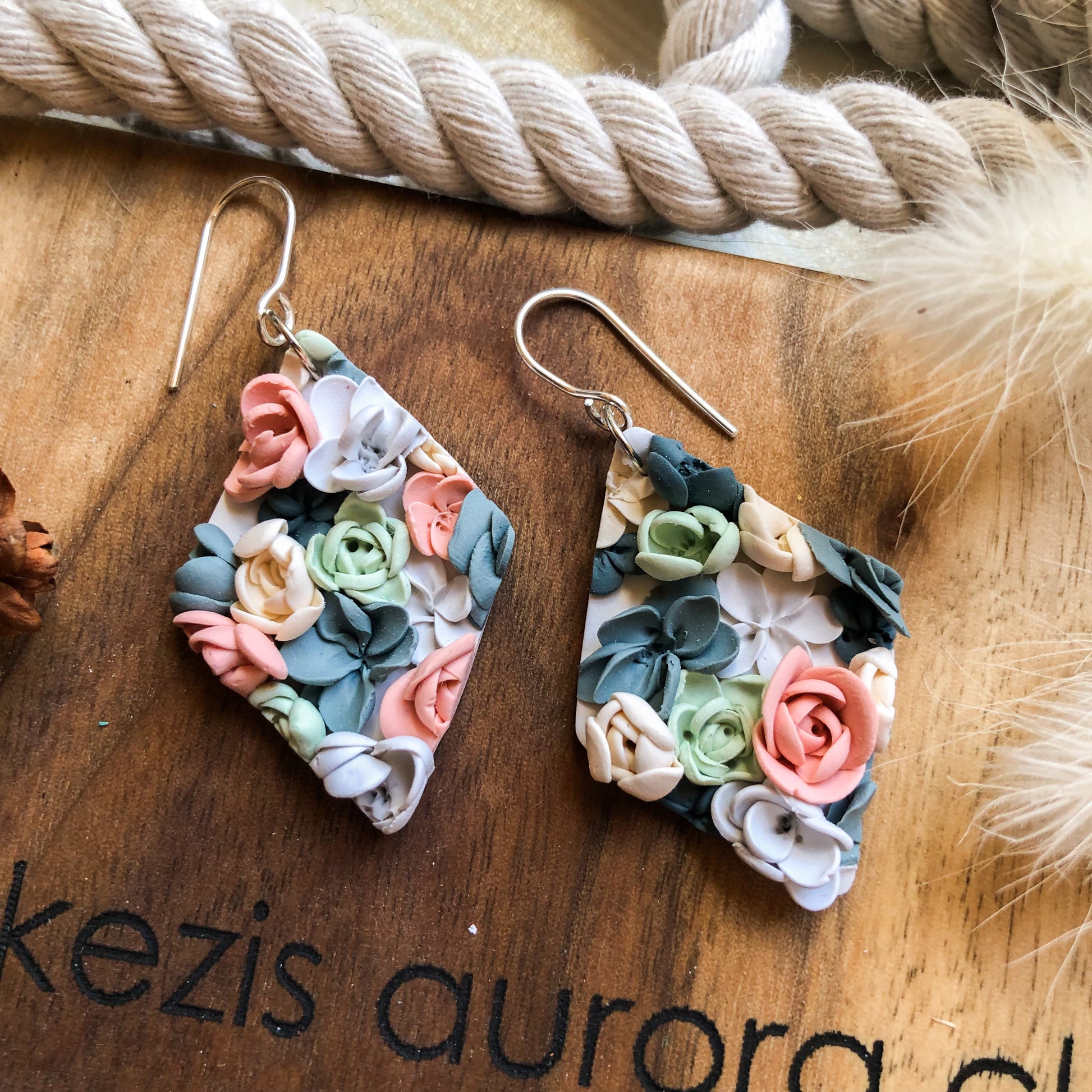 Spring Floral Polymer Clay Dangle Earrings on Sterling Silver or 14k Gold Filled Hooks, Canadian Made